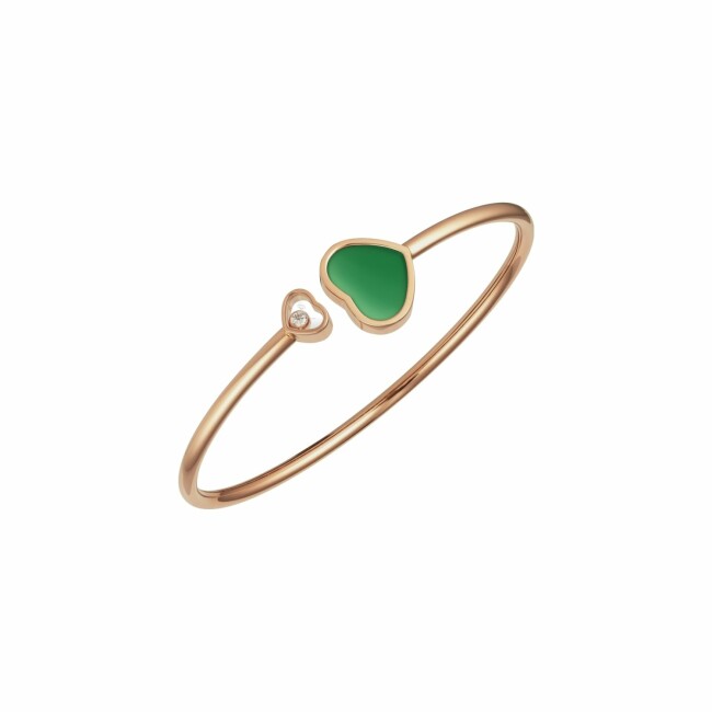 Happy Hearts Bracelet jonc Chopard Happy Hearts en or rose, diamant et agate verte, taille M