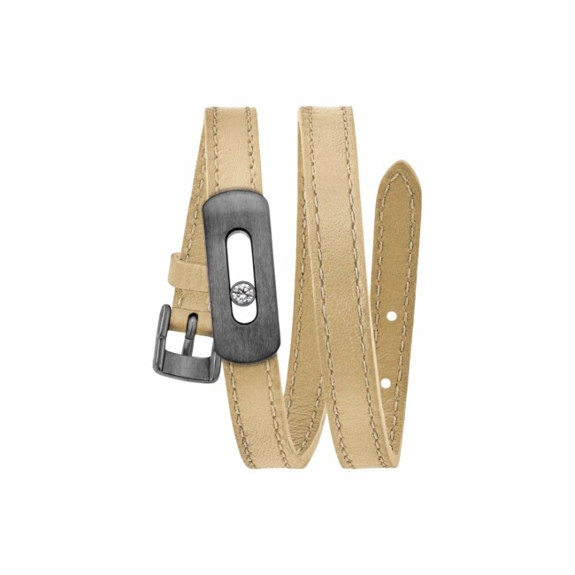 My Move Bracelet Messika My Move en titane graphite et diamant sur cuir beige nude