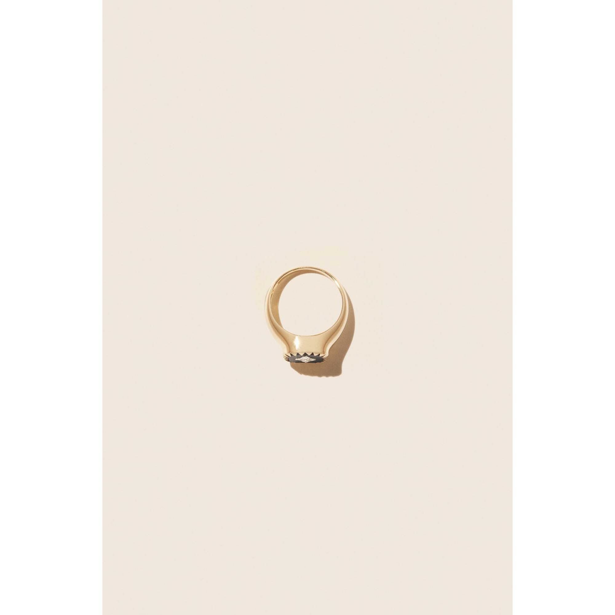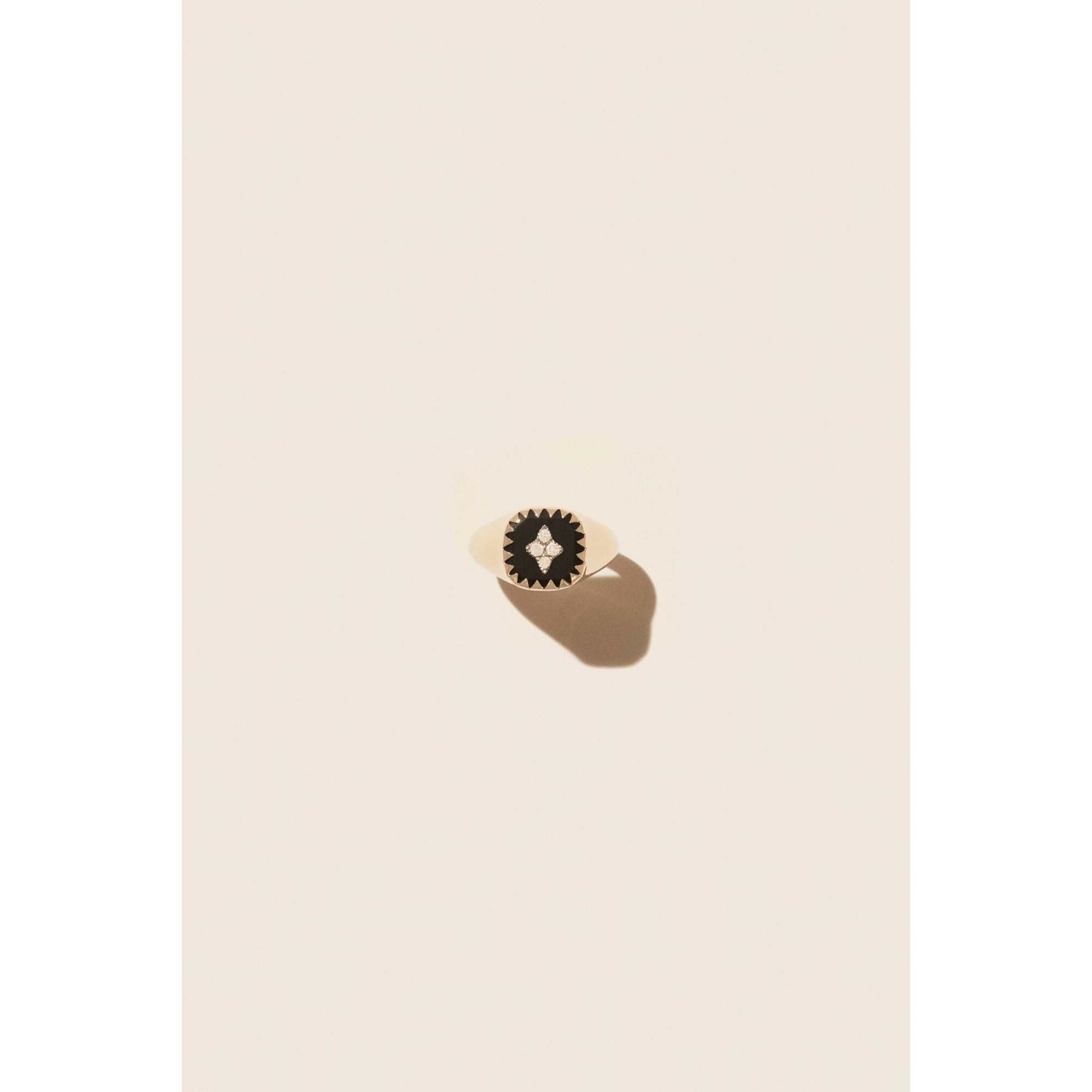Bague chevalière Pascale Monvoisin Pierrot en or jaune 9 carats, résine et diamant - Noir