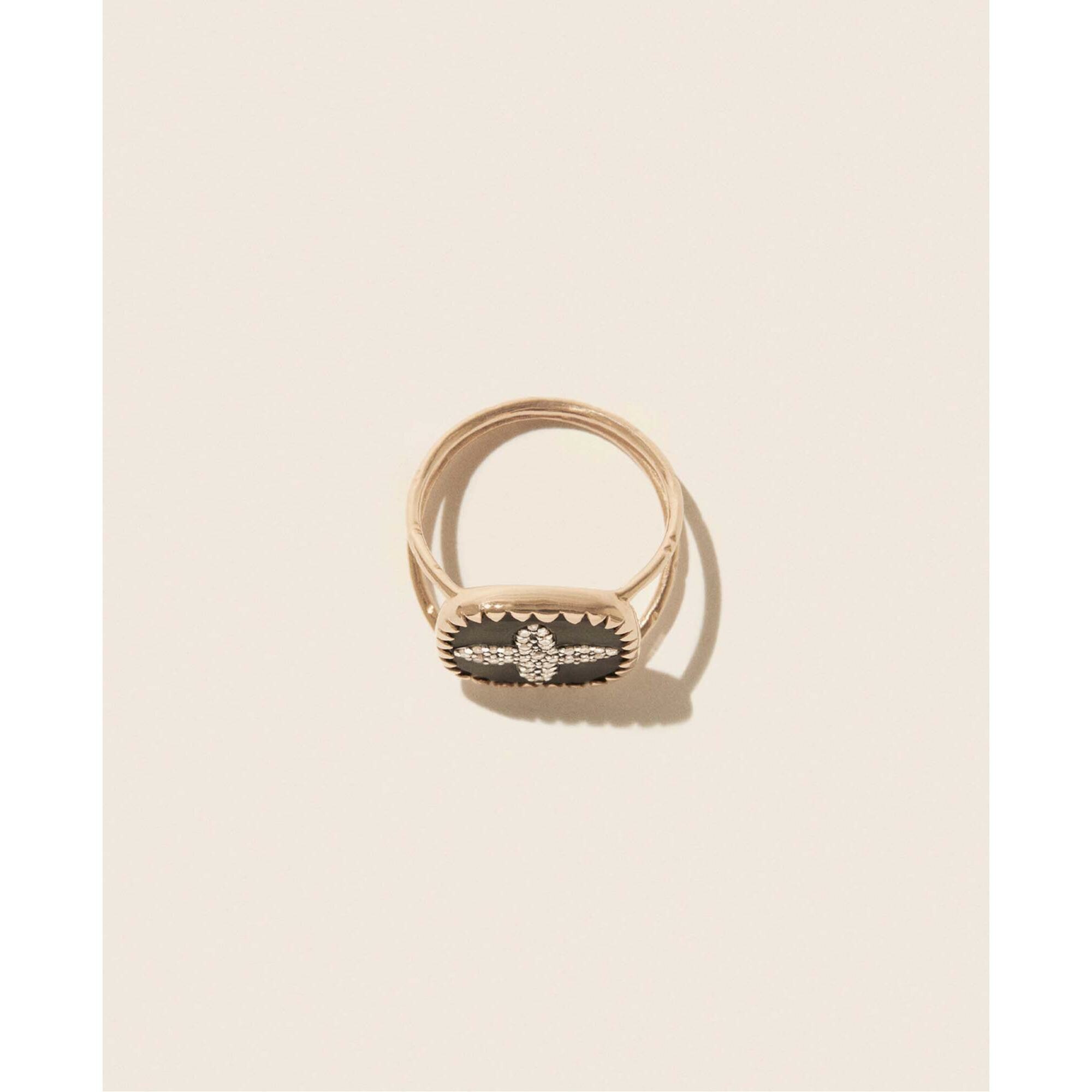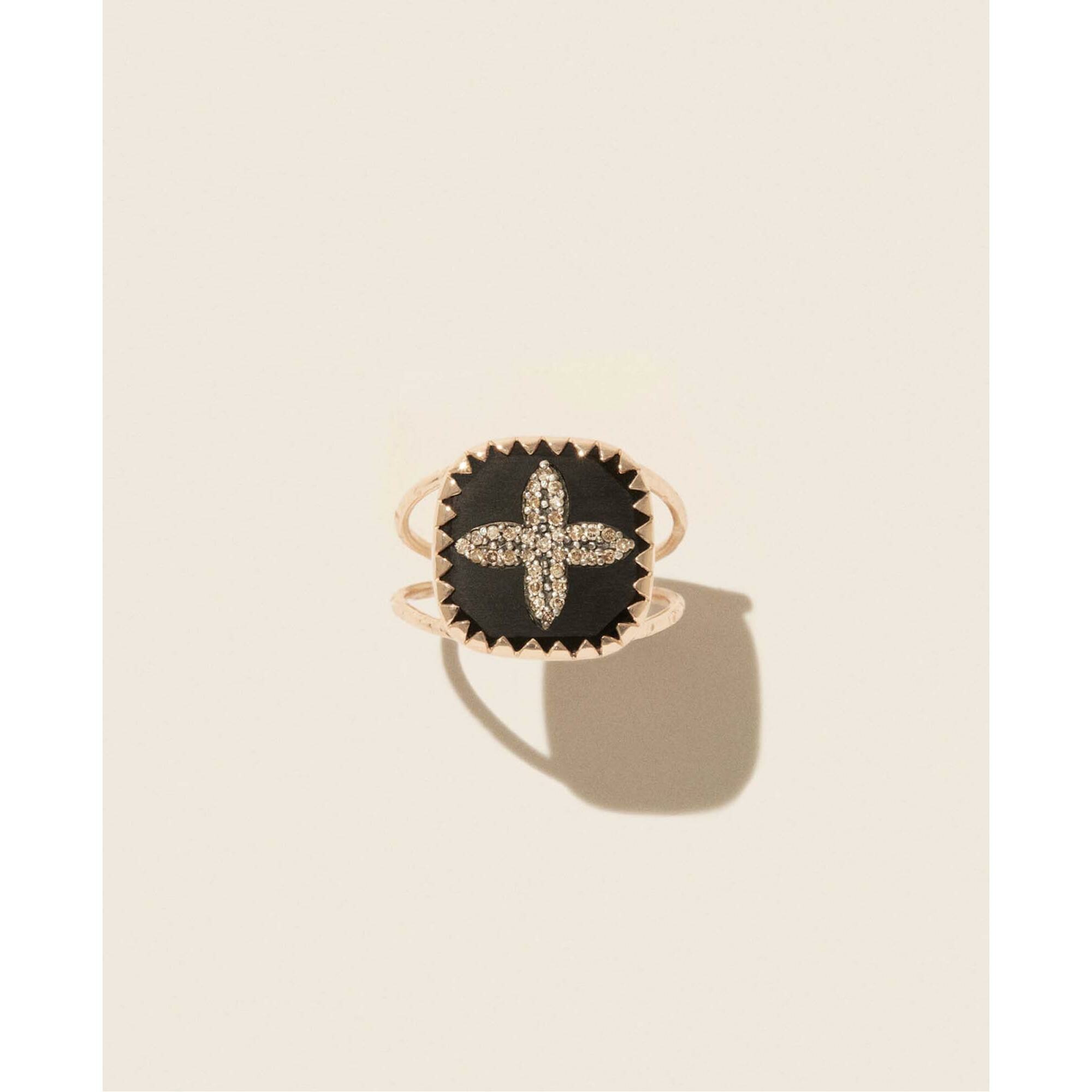 Bague Pascale Monvoisin Bowie N°2 en or jaune 9 carats, argent, résine et diamant - Noir